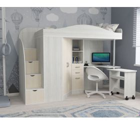 [name] => Кровать-чердак Юниор-4 Белое дерево/Дуб молочный